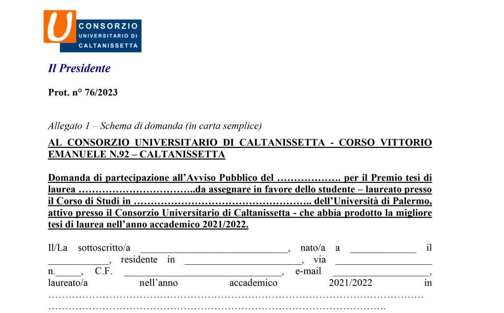Avviso pubblico per il Premio Tesi di Laurea “Prof. Giovanni Tesoriere” da assegnare in favore dello studente – Laureato presso il corso di studi in Medicina e Chirurgia Domanda di partecipazione all’Avviso Pubblico